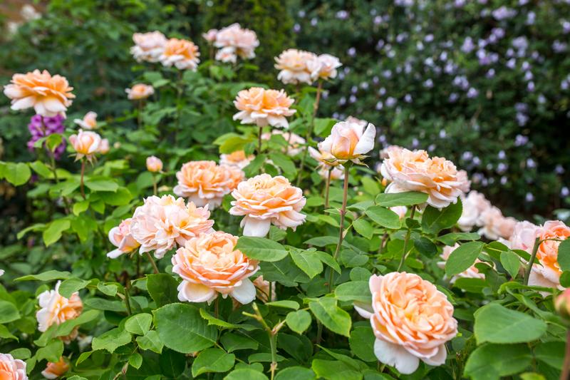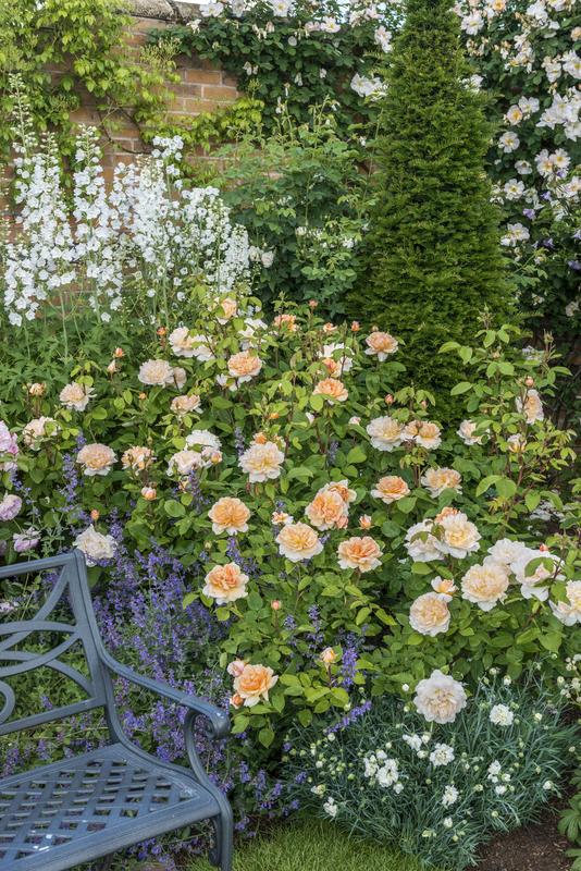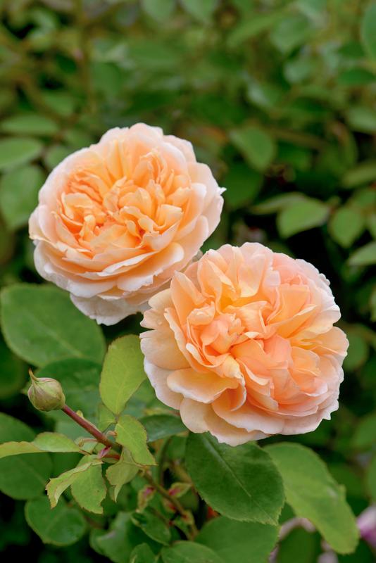 The Lady Gardener bears large, quartered rosettes, each about 4” across, packed with loosely arranged petals. They are a beautiful shade of pure apricot, paling towards the edges. There is a lovely Tea fragrance, with hints of cedar wood and vanilla